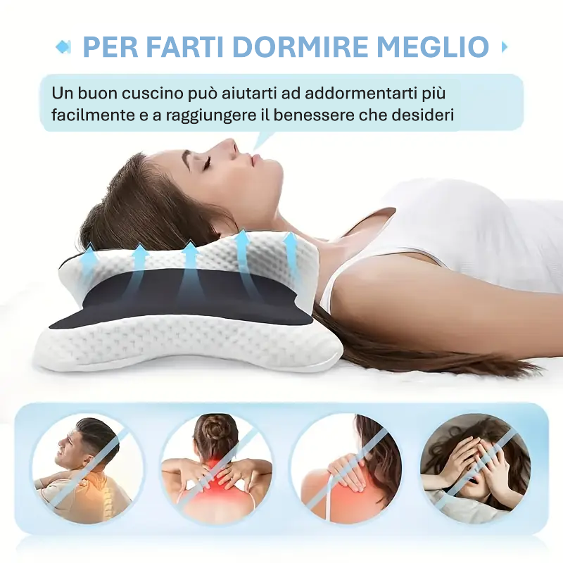 Grazie alla sua forma ergonomica e al supporto mirato sulle vertebre C5 e C6, SevenSleep offre il sollievo che molti cercavano da anni, trasformando il riposo in un vero trattamento posturale quotidiano.